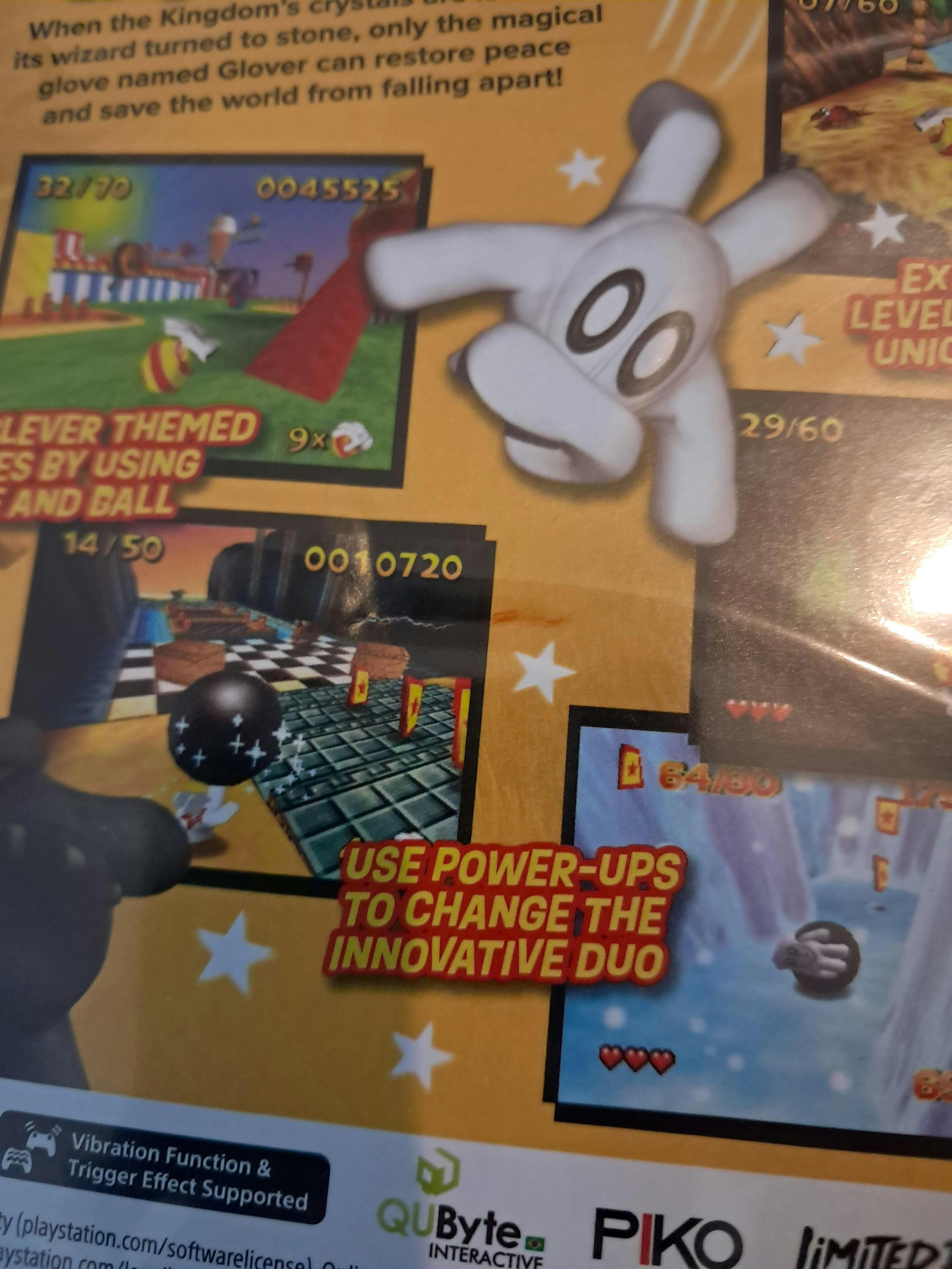 It's down to Glover, one of the magical gloves, to find the crystals, now disguised as rubber balls and return them safely to the castle. Guide Glover and the balls through seven magical worlds full of puzzles and hidden surprises. Watch out! The evil glove is lurking in the shadows, and he'll stop at nothing to foil Glover's attempts at restoring peace.