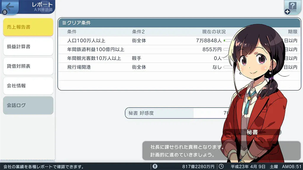 It's important that you decorate your town by establishing subsidiaries and advertise your company to increase your band power. The bigger your company grows, the more freedom you will have to develop the town, bringing it ever closer to your ideal.
